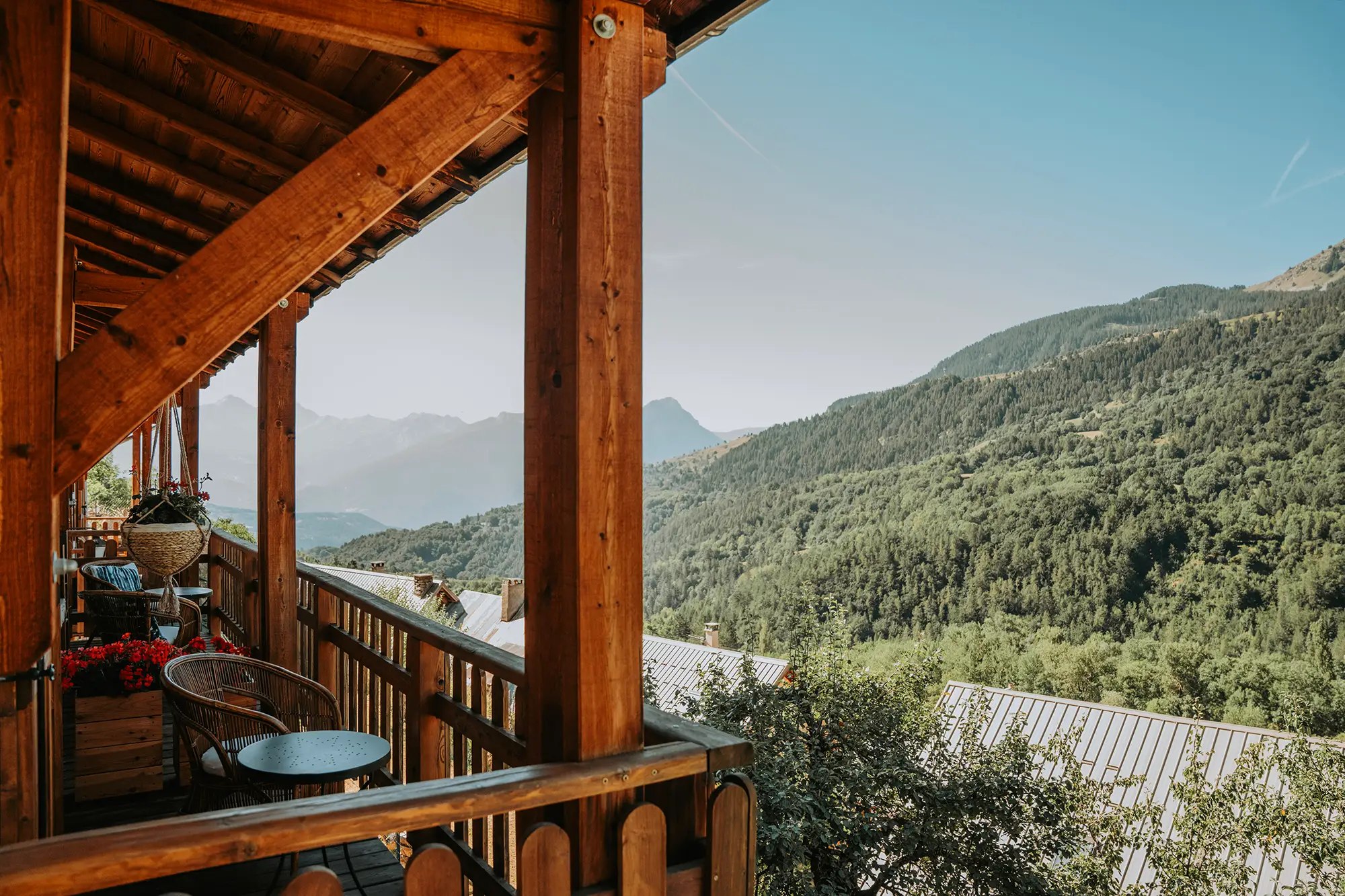 – Large balcon avec vue panoramique sur les montagnes